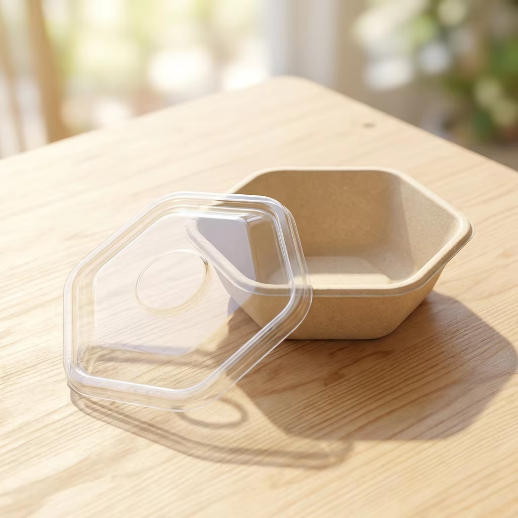 Couvercle transparent en plastique PET pour bol hexagonal en bagasse de canne à sucre de 750 ml