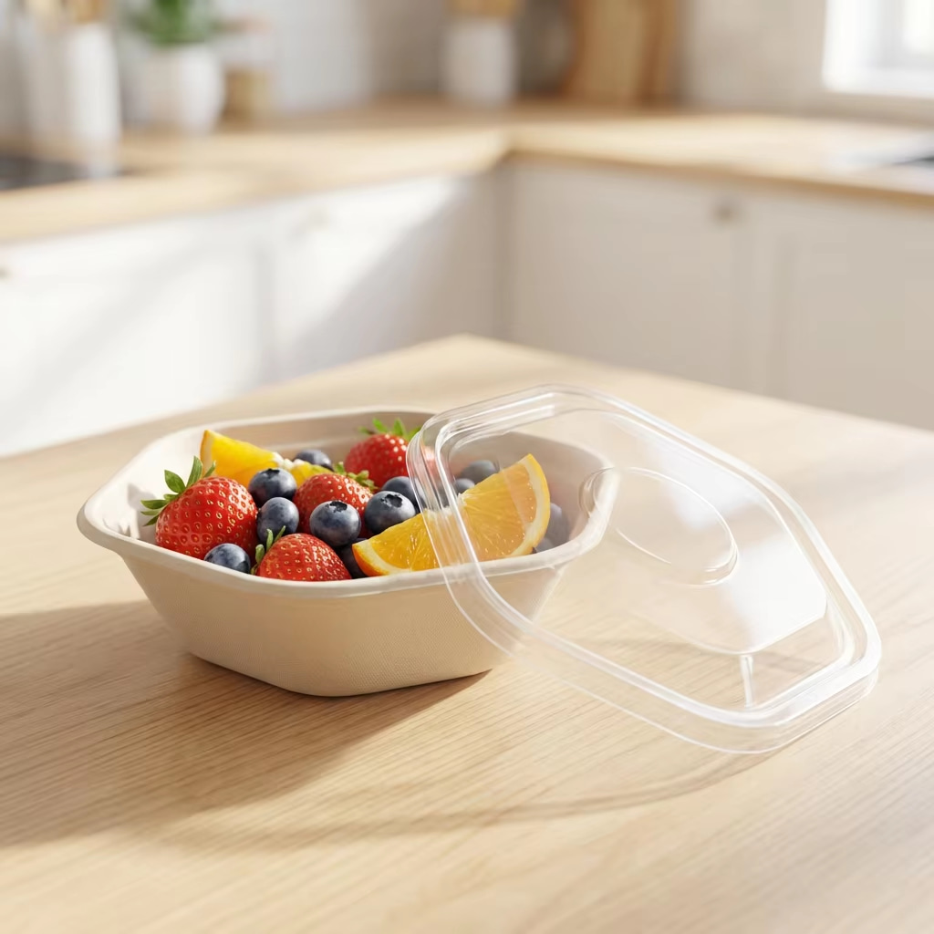 lCOUVERCLE DE QUALITÉ ALIMENTAIRE : conçu spécifiquement pour les bols, les récipients et les plateaux en pulpe de canne à sucre.